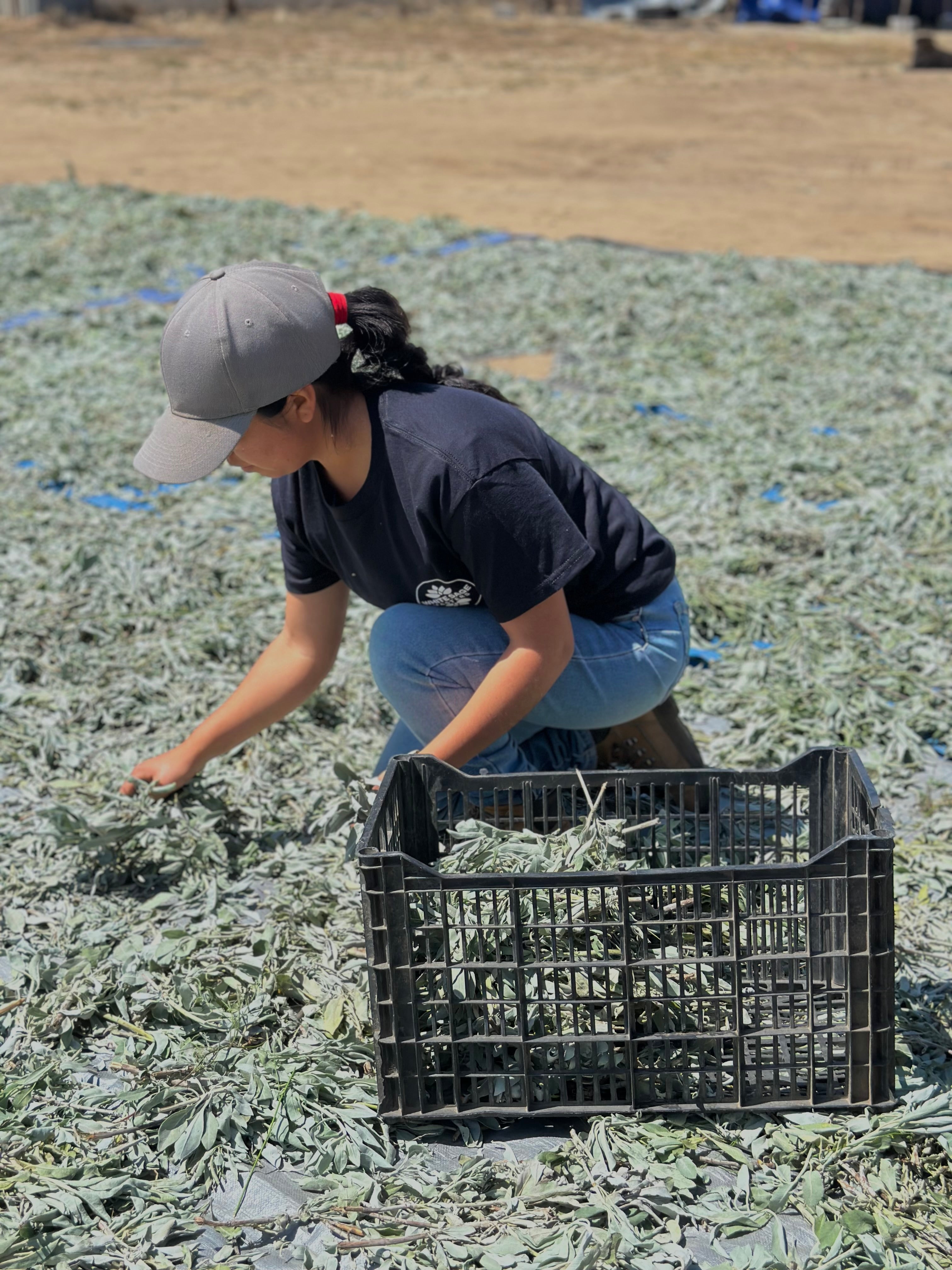 A visitor spotted a large white sage plant growing on the edge of the property. When asked what it was for, I learned about its medicinal and cultural properties. This ignited a new avenue to continue farming the land as my father had done in the past. I began experiments, growing a few rows of the hectare. After many attempts, we finally saw growth and began to cure, dry, and wrap smudge bundles.