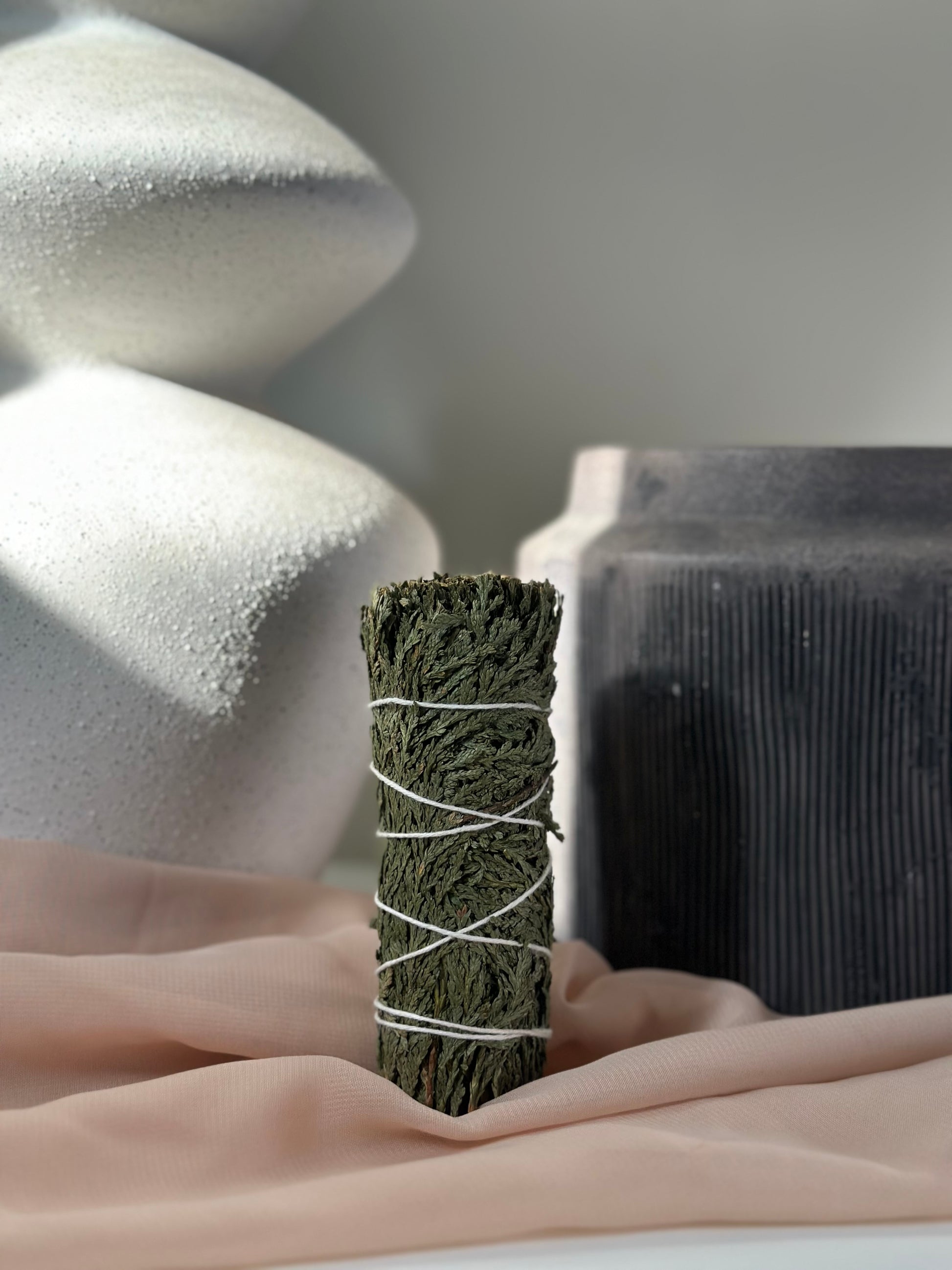 This cedar smudge stick is a natural and aromatic tool for cleansing and purifying your space. The stick is made from high-quality cedar, a tree that has been traditionally used for spiritual and healing purposes by indigenous cultures. The smudge stick is handcrafted by tying together cedar leaves and branches with natural cotton string. When burned, the smudge stick releases a soothing and grounding scent that can help to calm the mind and create a peaceful atmosphere. The compact size of the smudge stick makes it easy to use during meditation, yoga, or anytime you want to cleanse your space and promote positive energy.